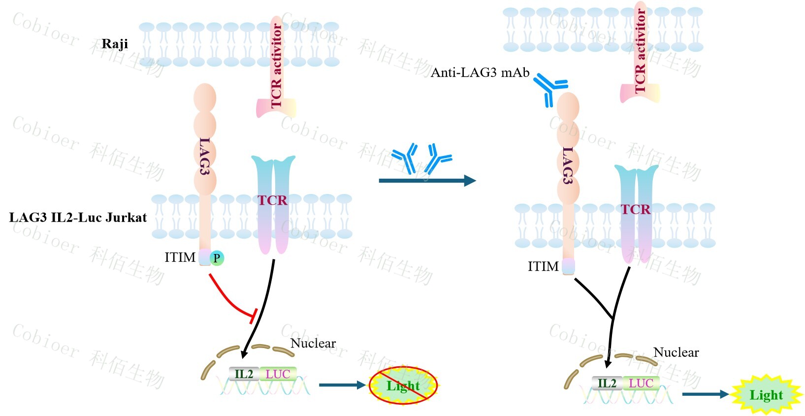 Figure 1. LAG3 IL2-Luc Jurkat 細胞模型原理圖