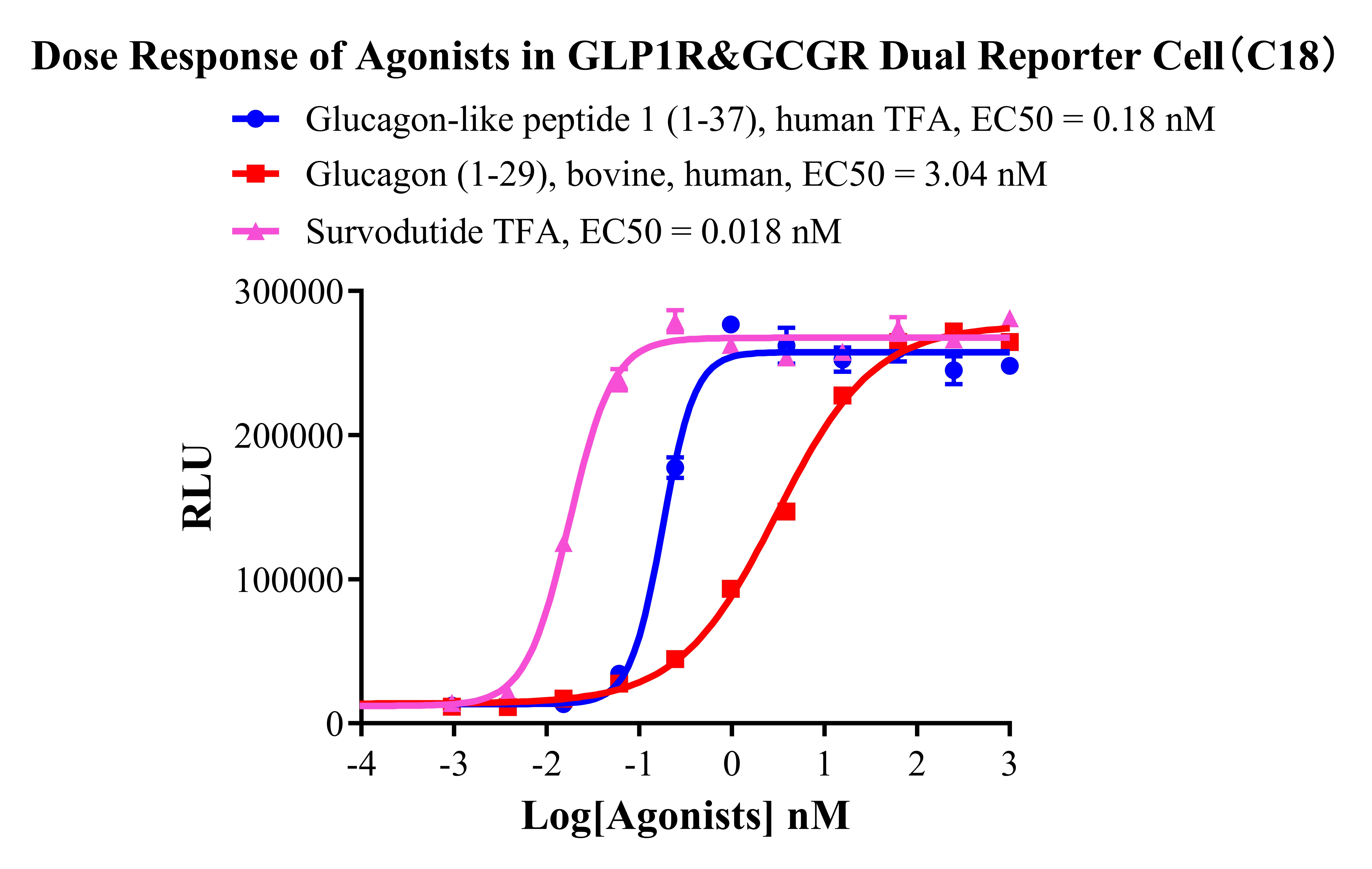Figure 3. Dose  response of Agonists in GLP1R&GCGR Dual Reporter Cell(C18).