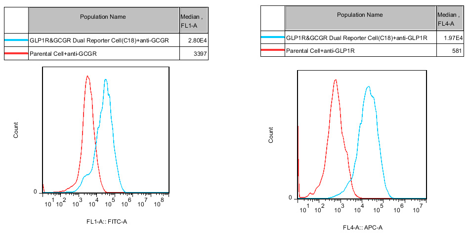 Figure 2. Recombinant GLP1R&GCGR Dual Reporter Cell stably expressing GLP1R&GCGR.