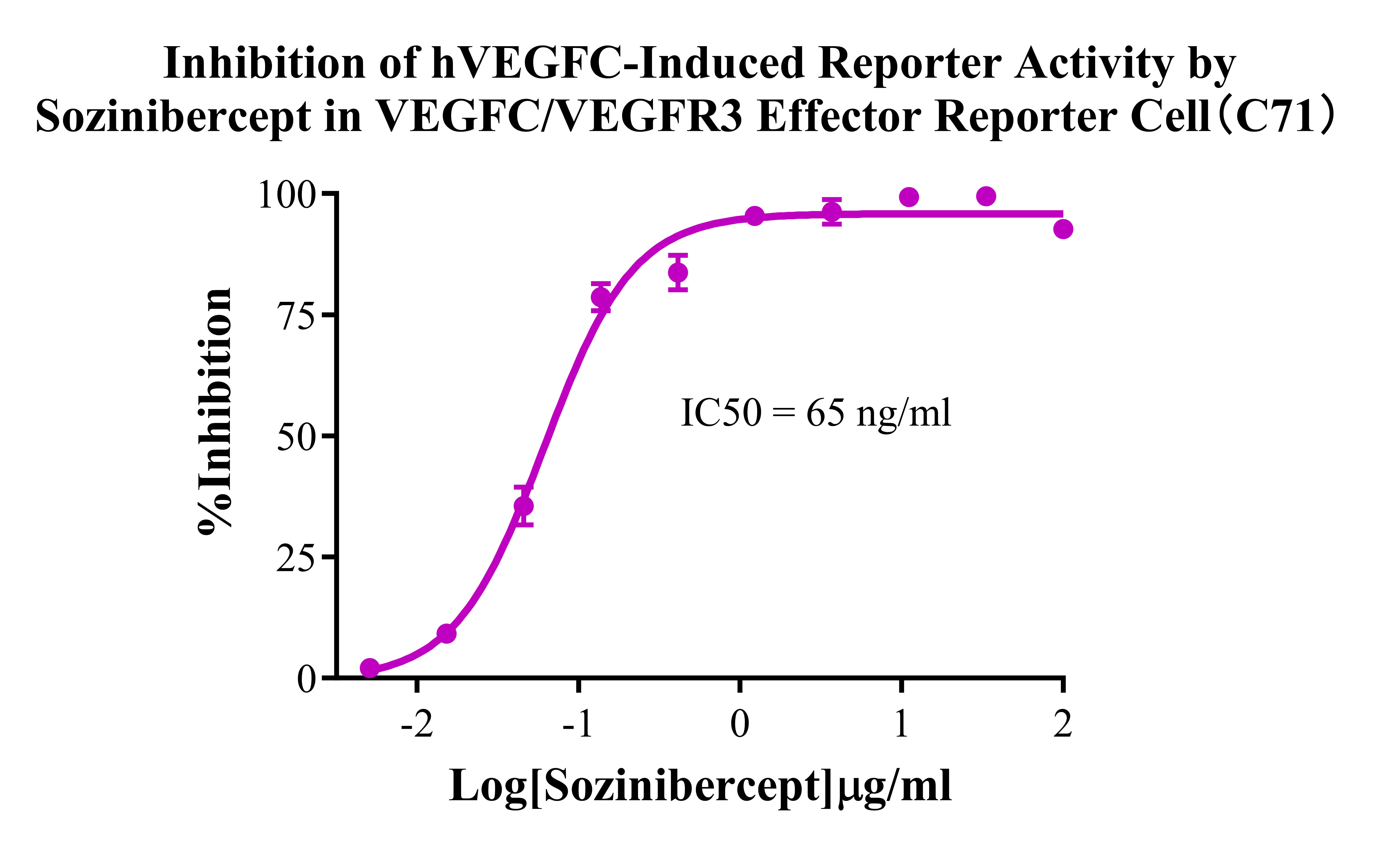 VEGFC/VEGFR3 Effector Reporter Cell 報告基因藥靶模型很好的模擬了體內 VEGFC/VEGFR3 的信號轉導過(guò)程,原理見(jiàn)下圖所示。![]() Figure 1. VEGFC/VEGFR3 Effector Reporter Cell 細胞模型原理圖 |