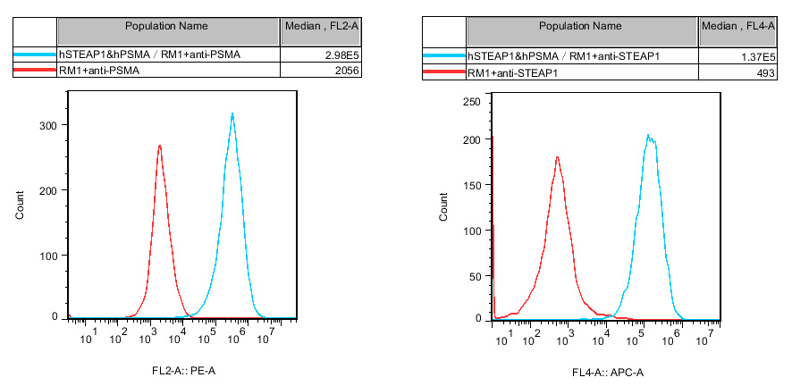 Figure 1. Recombinant hSTEAP1&hPSMA/RM1 stably expressing hSTEAP1&hPSMA. | |||