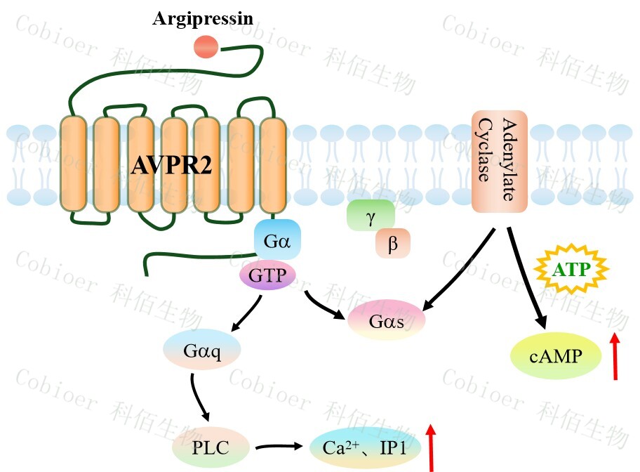 AVPR2(精氨酸加壓素受體 2 型)是一種主要分布于腎臟集合管上皮細胞基底側的 G 蛋白偶聯(lián)受體(GPCR),屬于加壓素/催產(chǎn)素受體家族,其特異性配體為垂體后葉分泌的 精氨酸加壓素(AVP,又稱(chēng)抗利尿激素 ADH);該受體通過(guò)偶聯(lián) Gs 蛋白,激活腺苷酸環(huán) 化酶,升高 cAMP,激活蛋白激酶 A(PKA),最終磷酸化并促使水通道蛋白 AQP2 向細 胞膜轉位,從而增加水的重吸收、濃縮尿液并維持體液平衡;其功能缺陷是 X 連鎖隱性遺 傳性腎性尿崩癥(NDI) 的主要病因(占 90%),患者因基因突變導致受體失活,表現為 多尿、煩渴及低滲尿,而獲得性異常則與鋰中毒或梗阻性腎病相關(guān);此外,AVPR2 作為藥 物靶點(diǎn),其拮抗劑(如托伐普坦)已用于治療低鈉血癥和心力衰竭的體液潴留。 |