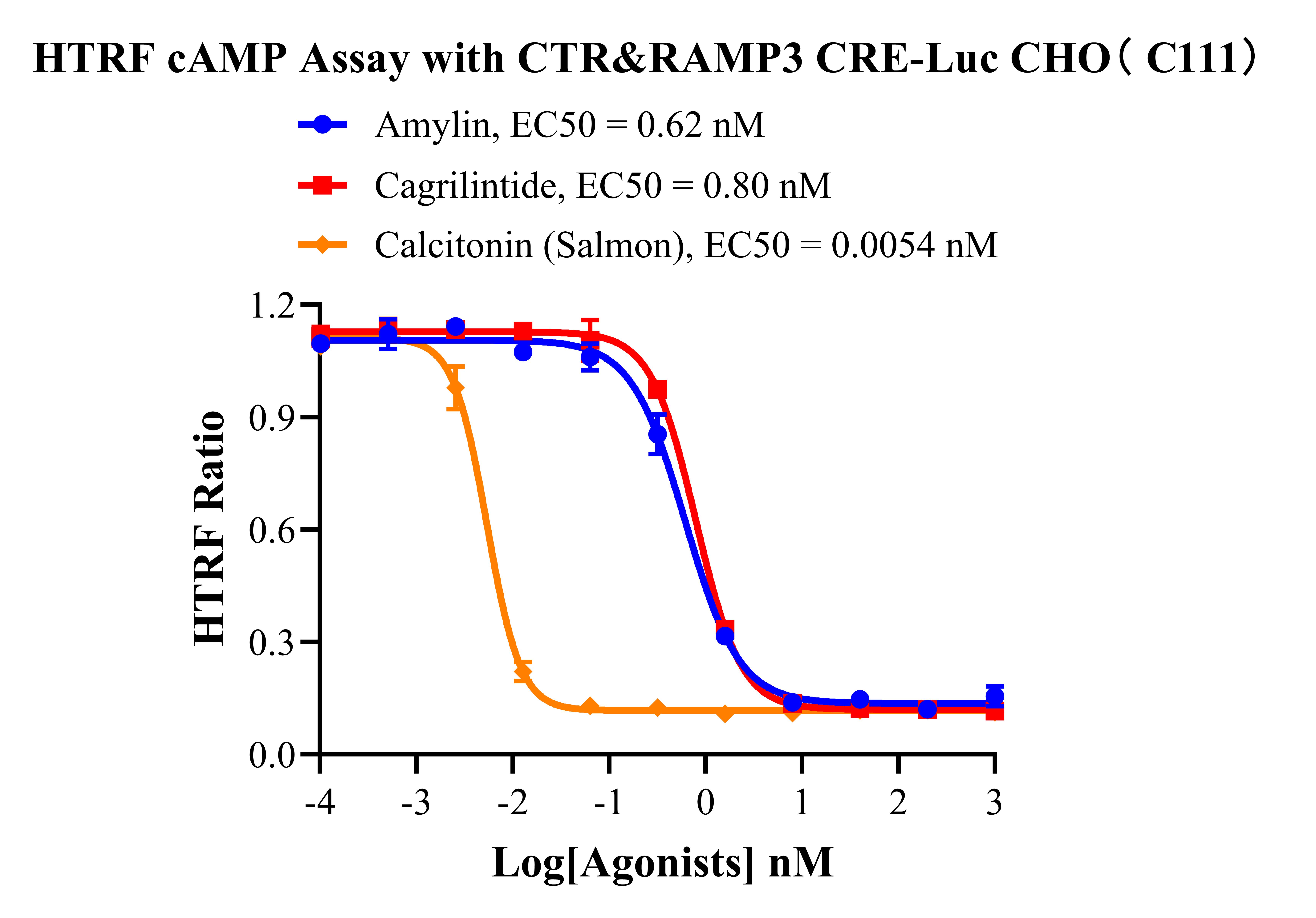 Figure 5. HTRF cAMP Assay with CTR&RAMP3 CRE-Luc CHO (C111). |