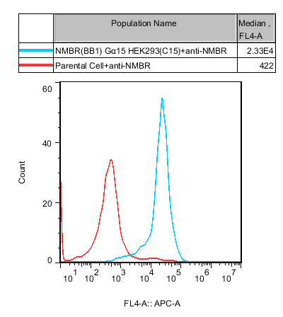 NMBR(BB1) Gα15 HEK293 細胞藥靶模型很好的模擬了體內 NMBR(BB1)&Gα15 的信號轉導過(guò)程,原理見(jiàn)下圖所示。![]() Figure 1. NMBR(BB1) Gα15 HEK293 細胞模型原理圖 |