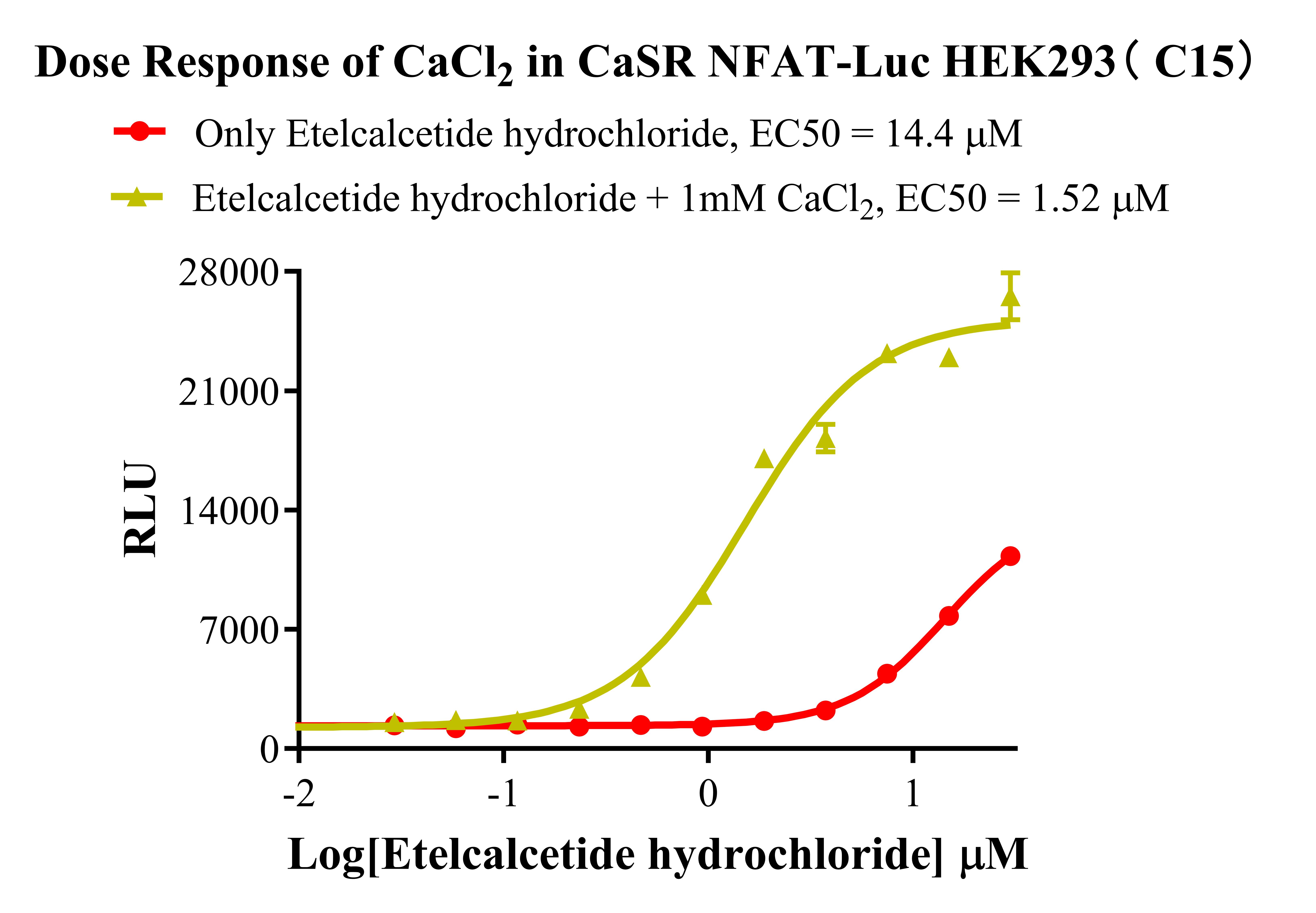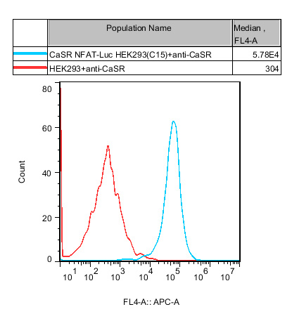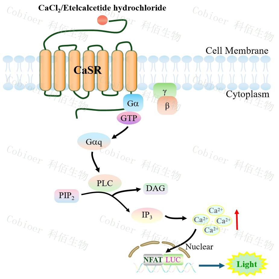 CaSR NFAT-Luc HEK293 細胞藥靶模型很好的模擬了體內 CaSR 的信號轉導過(guò)程,原 理見(jiàn)下圖所示。![]() Figure 1. CaSR NFAT-Luc HEK293 細胞模型原理圖 |