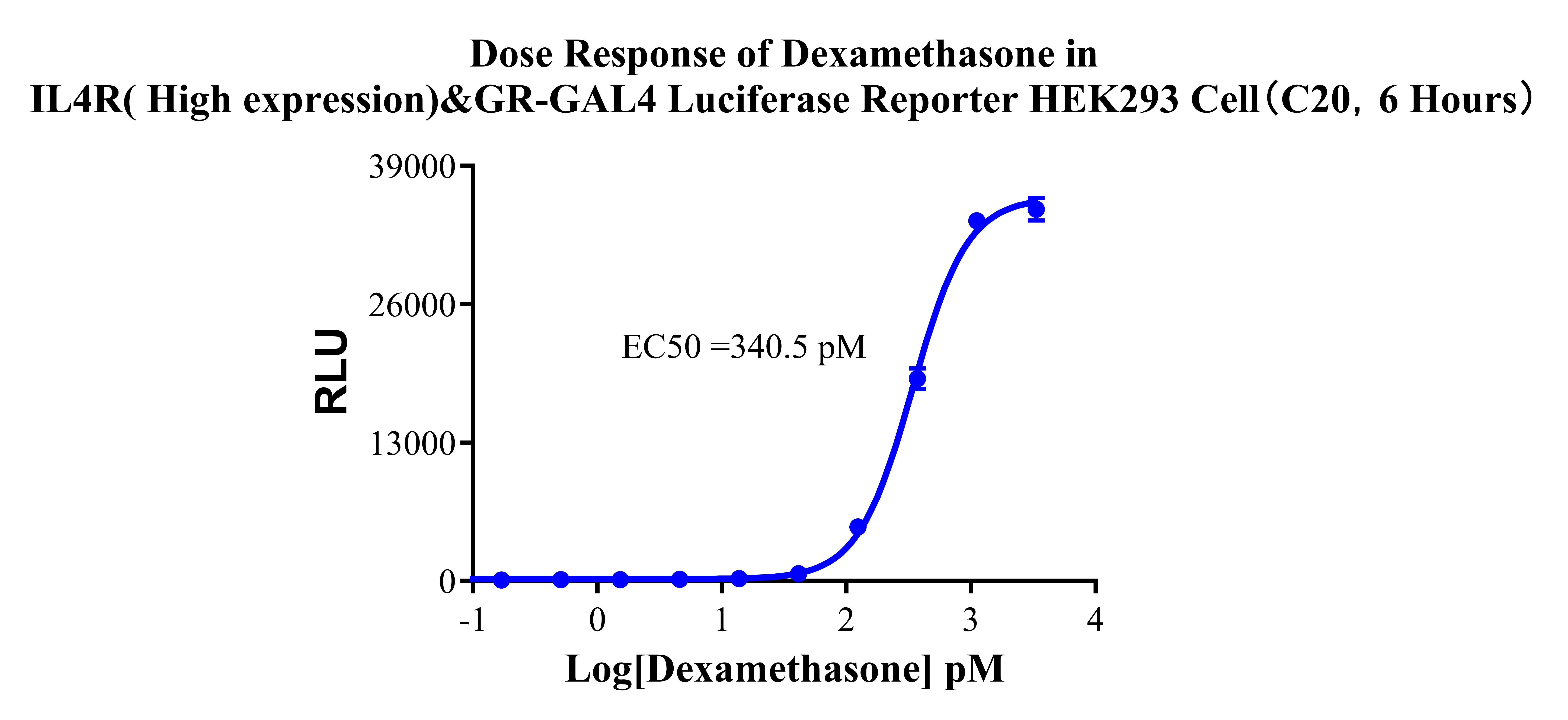 Figure 1. Dose Response of Dexametnasone in IL4R( High expression)&GR-GAL4 Luciferase Reporter HEK293 Cell (C20, 6 Hours). |