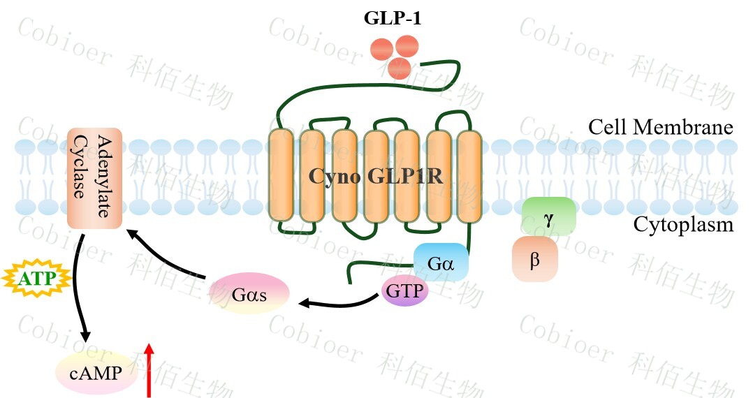 GLP1R 藥靶模型很好的模擬了體內 GLP1R 的信號轉導過(guò)程,原理見(jiàn)下圖所示。 ![]() Figure 1. Cyno GLP1R CHO 細胞模型原理圖