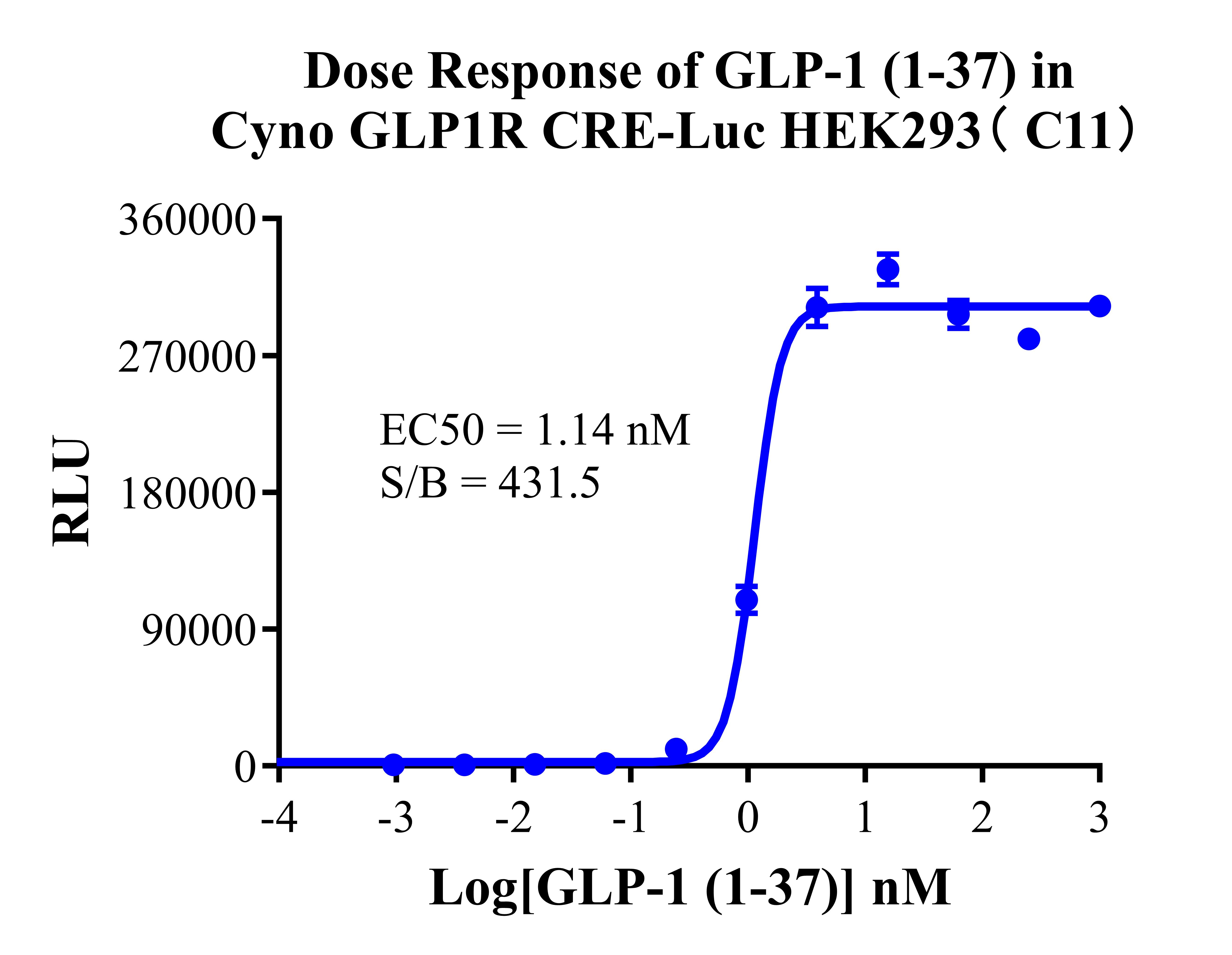 Figure 3. Dose response of GLP-1 (1-37) in Cyno GLP1R CRE-Luc HEK293 Cells (C11).