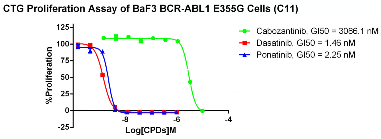 Figure 4. CTG Proliferation Assay of BaF3 BCR-ABL1 E355G Cells (C11).