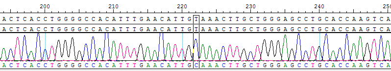 1.Sanger of PDGFRA D842V-V658A/BaF3 Figure 1. PDGFRA D842V-V658A/BaF3 V658A Figure 2. PDGFRA D842V-V658A/BaF3 D842V |