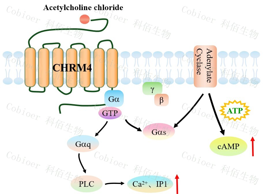 | 毒蕈堿乙酰膽堿受體(MAChRs,簡(jiǎn)稱(chēng) M 受體)參與中樞神經(jīng)系統的運動(dòng)控制、體溫 調節、心血管調節和記憶,介導周?chē)窠?jīng)系統的平滑肌收縮、腺體分泌和心率、調節心肌 收縮力。CHRM4 作為 Gi/o 偶聯(lián)型毒蕈堿受體,中樞神經(jīng)系統高表達,其內源性配體乙酰 膽堿(ACh)激活后優(yōu)先通過(guò) Gi/oα亞基抑制腺苷酸環(huán)化酶,同時(shí)釋放 Gβγ二聚體。 | |