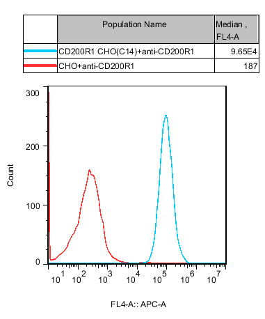 | CD200R1 CHO 細胞,在 CHO-K1 細胞的基礎上,穩定表達人 CD200R1。 | |