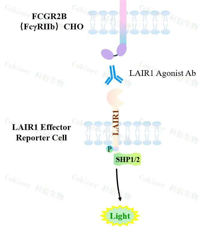 LAIR1 Effector Reporter Cell 報告基因藥靶模型很好的模擬了體內 LAIR1 的信號轉導過(guò)程,原理見(jiàn)下圖所示。![]() Figure 1.LAIR1 Effector Reporter Cell 細胞模型原理圖  |