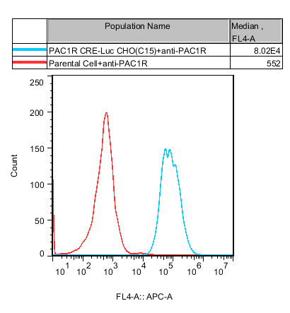 PAC1R CRE-Luc CHO 報告基因藥靶模型很好的模擬了體內 PAC1R 的信號轉導過(guò)程, 原理見(jiàn)下圖所示。![]() Figure 1. PAC1R CRE-Luc CHO 細胞模型原理圖 |
