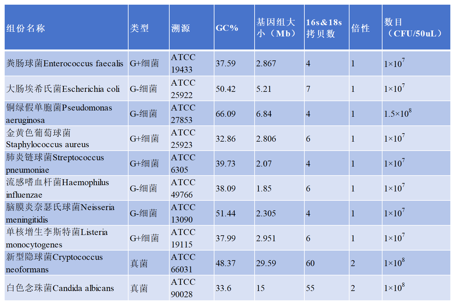 科佰生物新推出了多重病原菌質(zhì)控品,選擇具有代表性的病原組成見(jiàn)下表。以上病原均可溯源,各病原基因組數據科佰可提供。